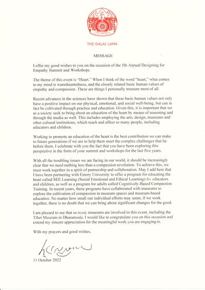 "Working to promote an education of the heart is the best contribution we can make to future generations if we are to help them meet the complex challenges that lie before them. I celebrate with you the fact that you have been exploring this perspective in the form of your summit and workshops for the last five years." ~~The Dalai Lama